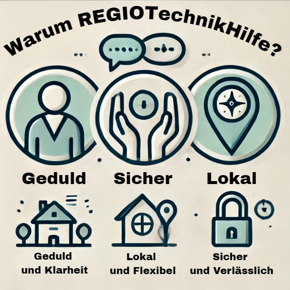 Wir helfen Ihnen dabei, die digitale Welt besser zu verstehen! Ob Smartphone, Tablet, Computer oder Smart-Home-Geräte – REGIOTechnikHilfe bietet verständliche Unterstützung bei allen technischen Fragen. Einfach, lokal und zuverlässig.